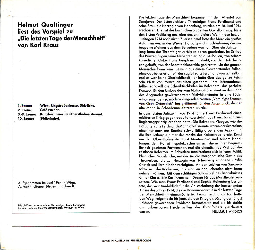 Helmut Qualtinger Liest das Vorspiel zu "Die Letzten Tage Der Menschheit" von Karl Kraus.