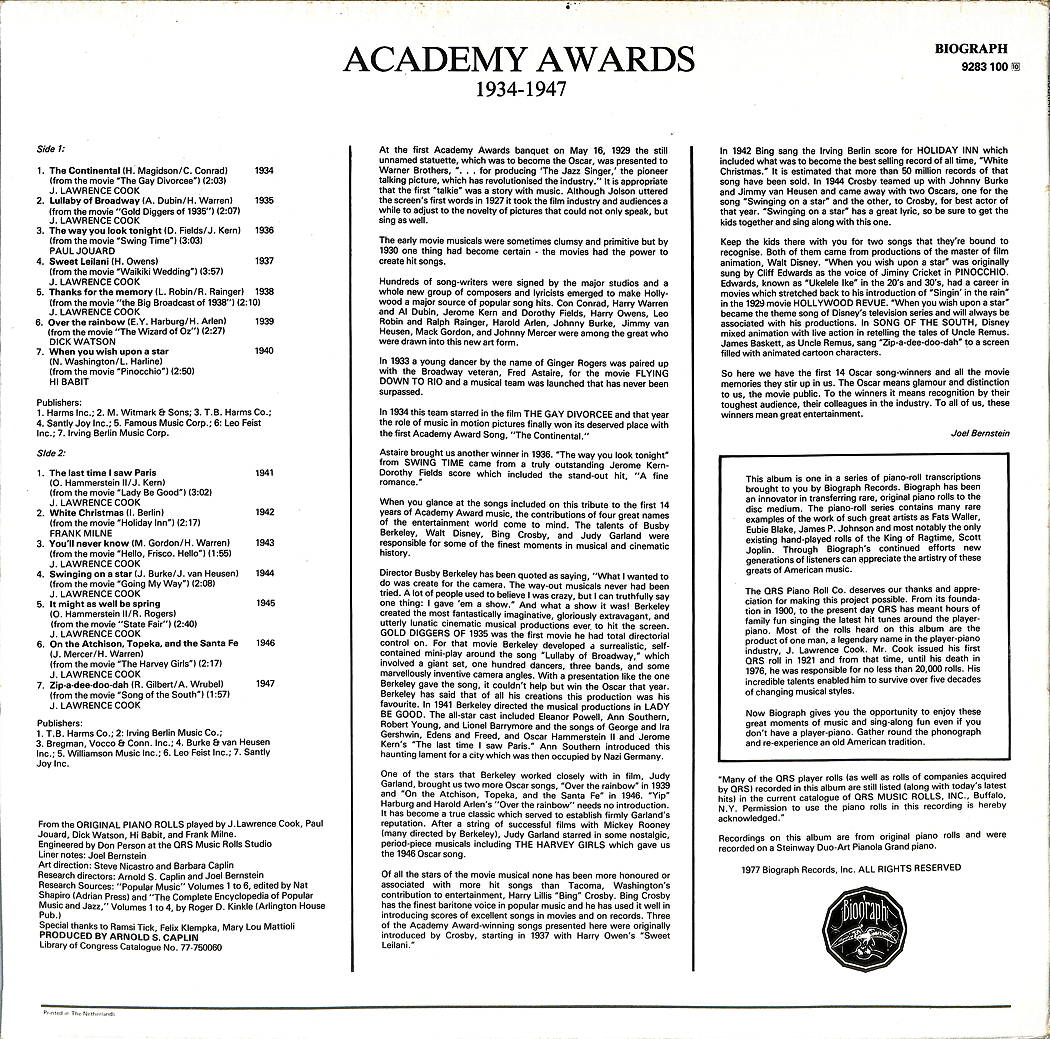 Academy Award Winners from Movie Musicals 1934-1947 [Vinyl]