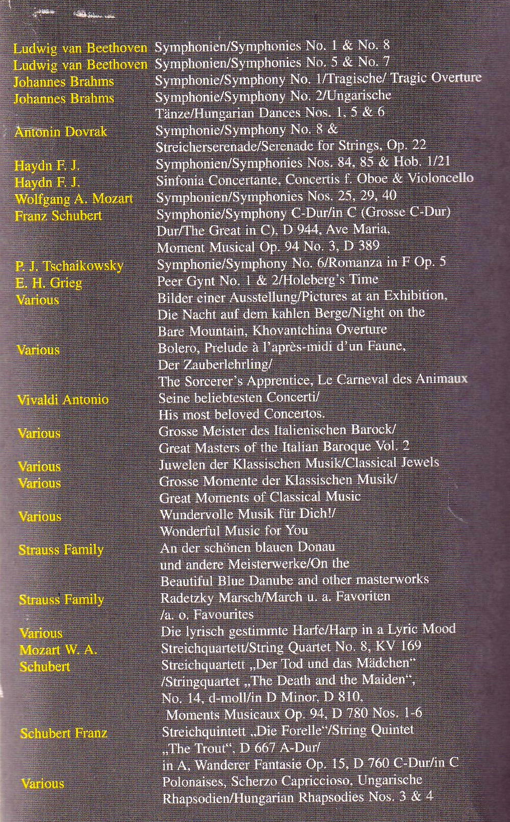 Streichquartett „Der Tod und das Mädchen" /Stringquartet, The Death and the Maiden", No. 14, d-moll/in D Minor, D 810, Moments Musicaux Op. 94, D 780 Nos. 1-6 Streichquintett Die Forelle"/String Quintet „The Trout", D 667 A-Dur/in A, Wanderer Fantasie Op. 15, D 760 C-Dur/in C Polonaises, Scherzo Capriccioso, Ungarische Rhapsodien/Hungarian Rhapsodies Nos. 3 & 4