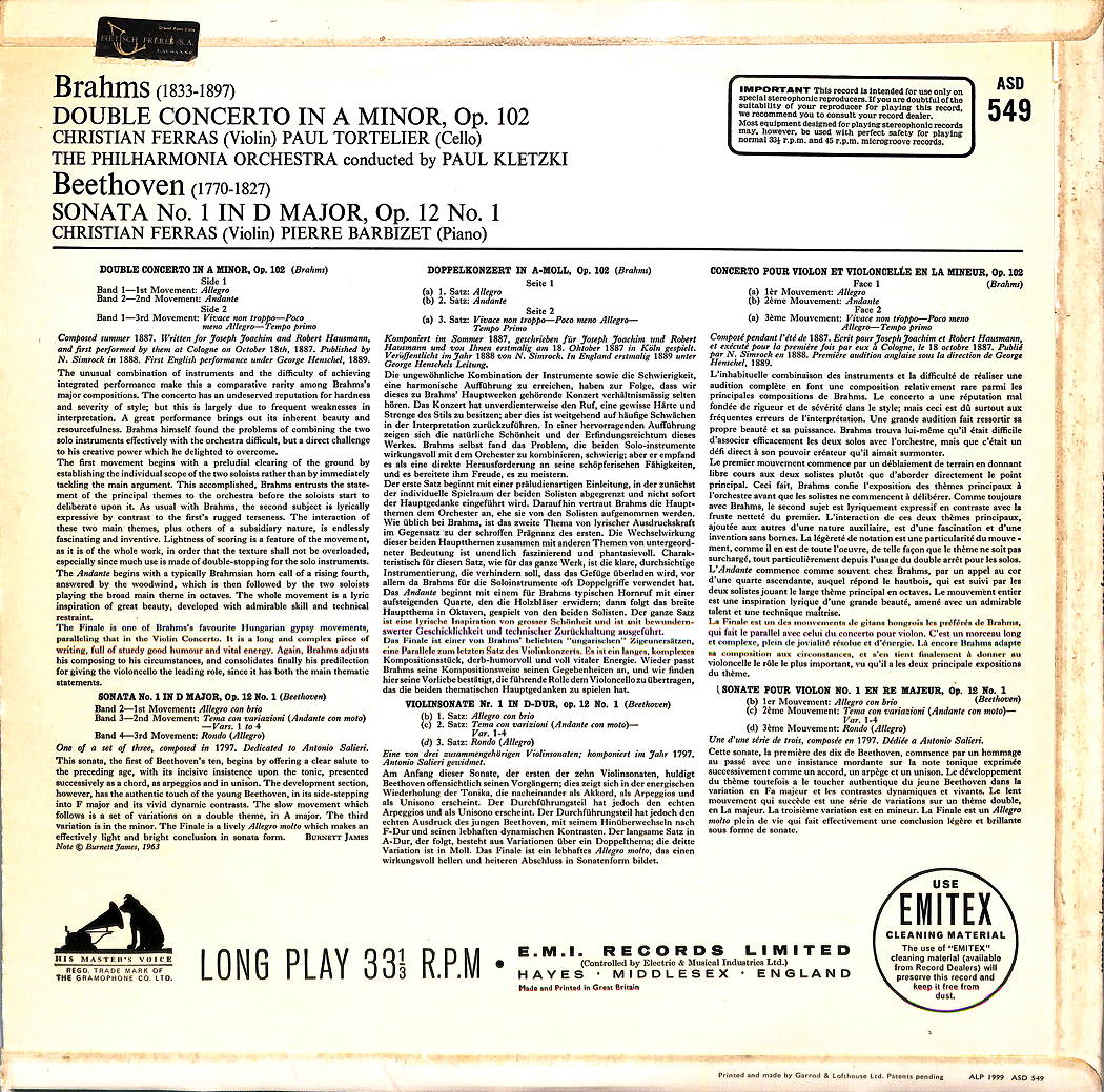 - Interpret Christian Ferras, Paul Tortelier, Paul Kletzki, Pierre Barbizet, Brahms, Beethoven