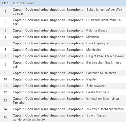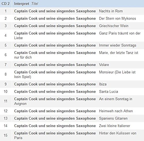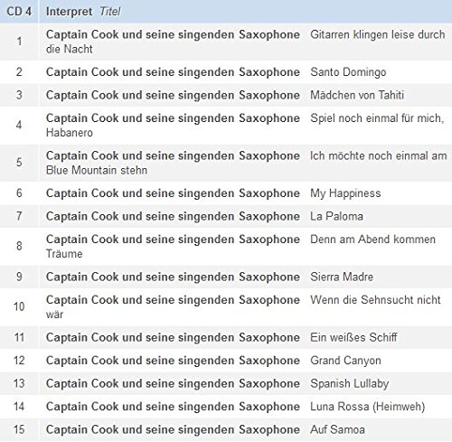 Über 10 Studioalben veröffentlichte die Instrumental-Schlager-Gruppe “Captain Cook und seine singenden Saxophone” bereits, vollgepackt mit ihren wunderbaren instrumentalen Melodien von bekannten deutschen Schlagern, beliebten Oldies und Instrumentalstücken von den 50er Jahren bis hin zur heutigen Zeit. Der Durchbruch gelang 2003 nach einer Teilnahme beim Grand Prix der Volksmusik.