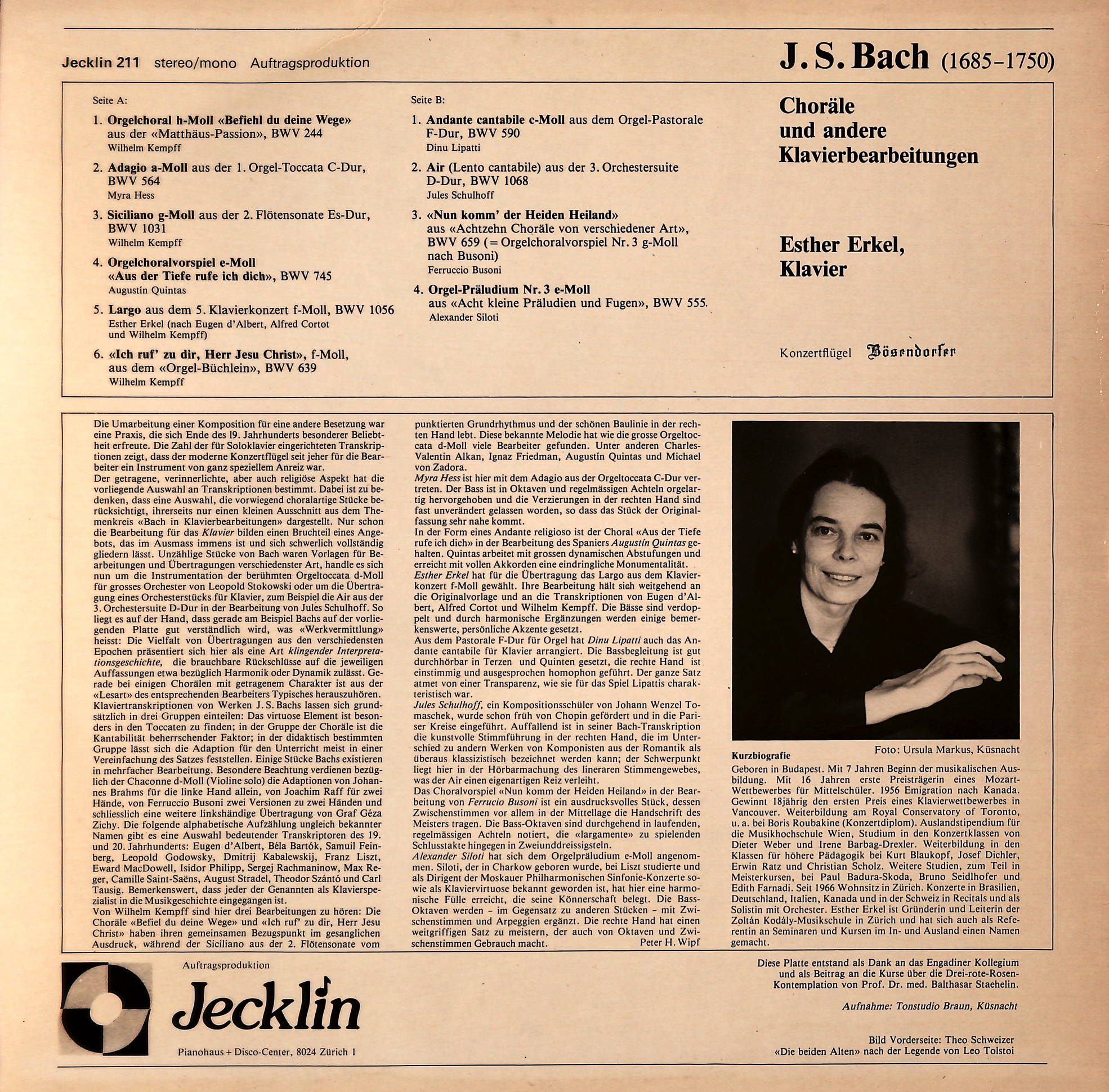 5. Largo aus dem 5. Klavierkonzert f-Moll, BWV 1056 Esther Erkel (nach Eugen d'Albert, Alfred Cortot und Wilhelm Kempff)