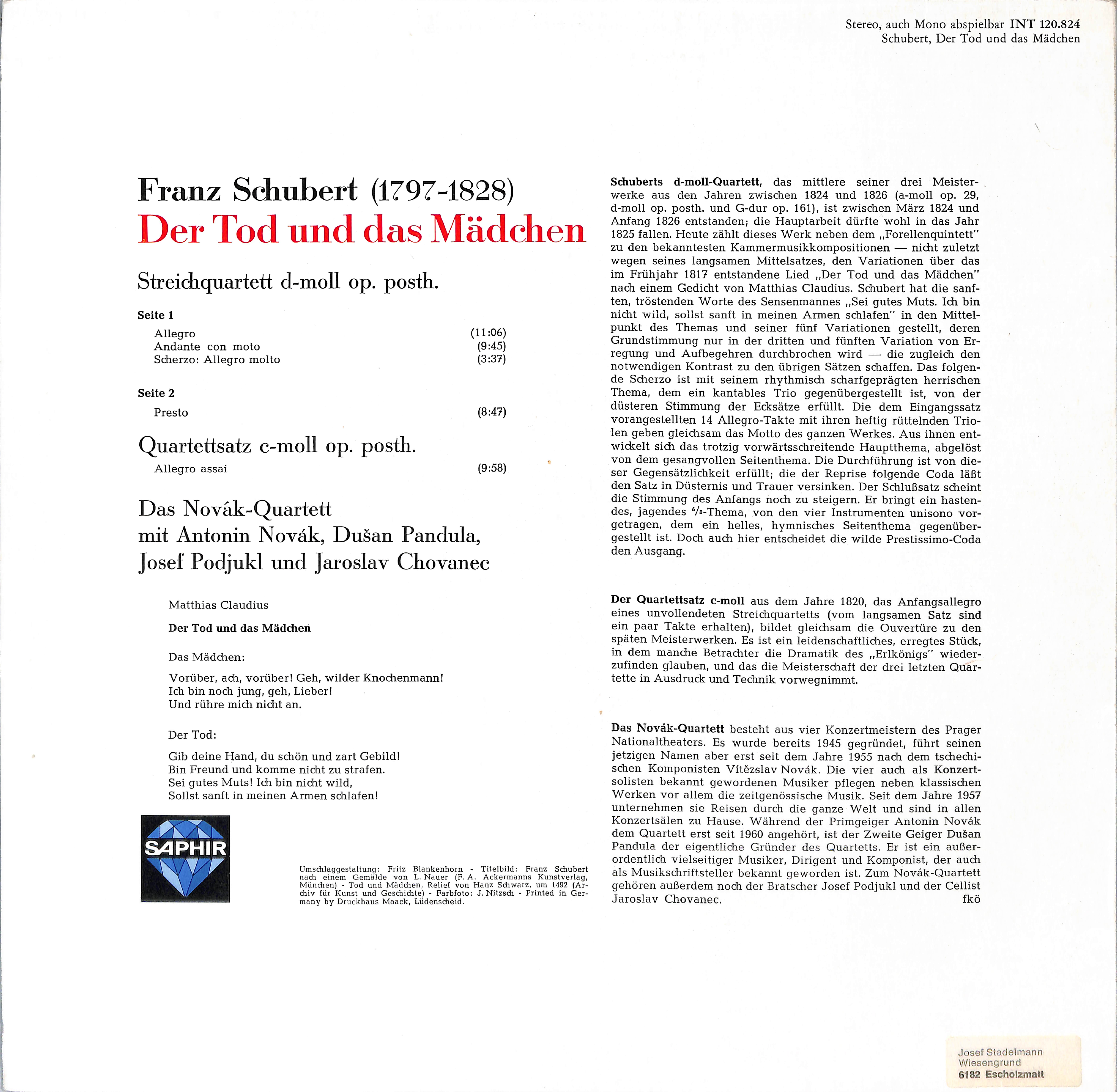 Streichquartett D-moll Op. Posth. "Der Tod Und Das Mädchen"