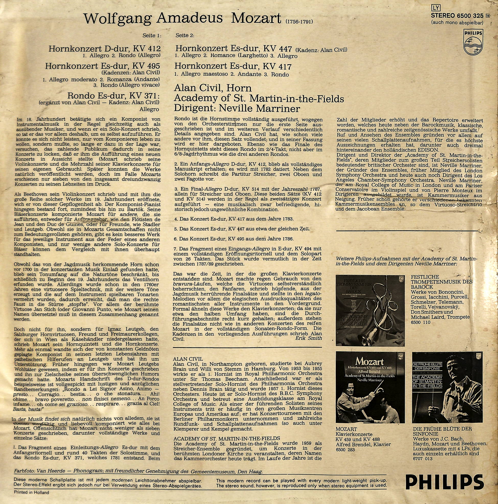 - Spielzeit Academy of St. Martin-in-the-Fields, Alan Civil, Neville Marriner