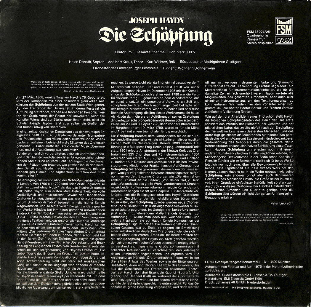 Die Schöpfung - Gesamtaufnahme Hob. Verz. X X I: 2