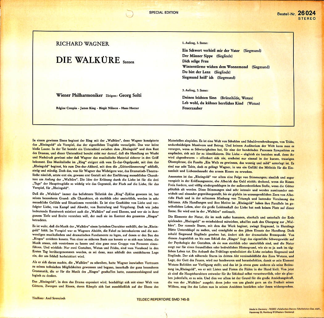 Vocals – Birgit Nilsson, Hans Hotter, James King (3), Régine Crespin