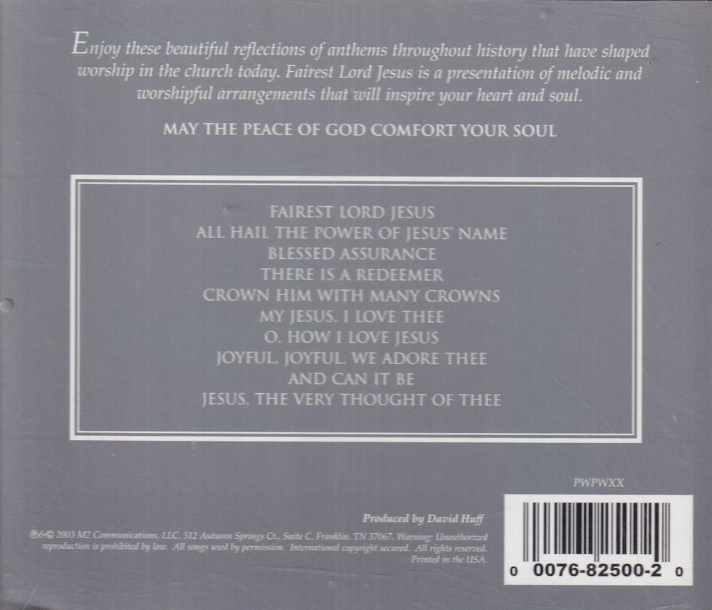 FAIREST LORD JESUS ALL HAIL THE POWER OF JESUS' NAME BLESSED ASSURANCE THERE IS A REDEEMER CROWN HIM WITH MANY CROWNS MY JESUS. I LOVE THEE O. HOW I LOVE JESUS JOYFUL. JOYFUL. WE ADORE THEE AND CAN IT BE JESUS. THE VERY THOUGHT OF THEE.