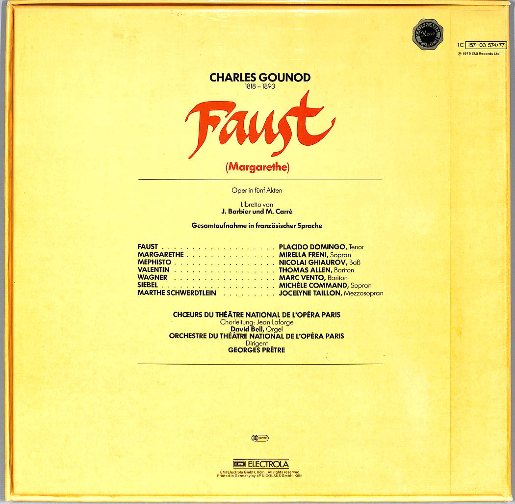 - Interpret Charles Gounod, Placido Domingo, Mirella Freni, Nicolai Ghiaurov, Thomas Allen, Georges Prêtre