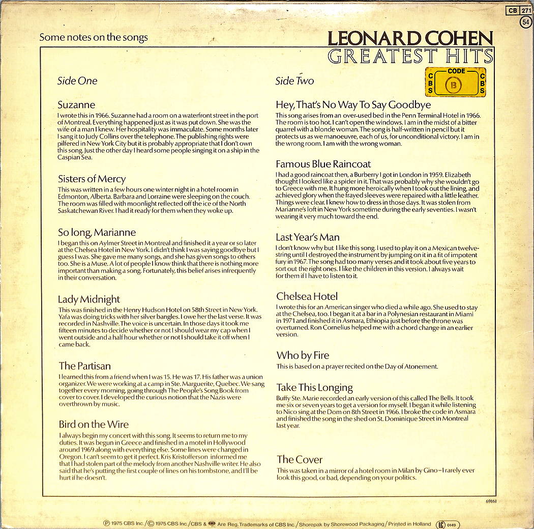 Written-By – A. Marly* (tracks: A6), H. Zaret* (tracks: A6), L. Cohen* (tracks: A1 to A5, B1 to B6)