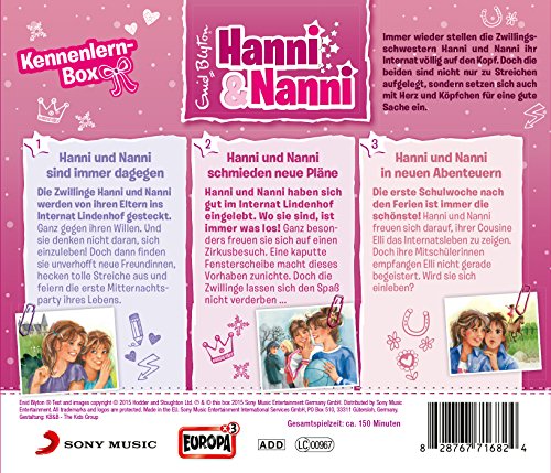 DIe Zwillinge Hanni und Nanni werden von ihren Eltern ins Internat Lindenhof gesteckt. Und sie denken nicht daran, sich einzuleben! Doch die Mädchen von Lindenhof machen es ihnen leicht - denn sie sind lustig, freundlich und halten in jeder Situation zusammen. Die Box zum Kennenlernen der Serie.