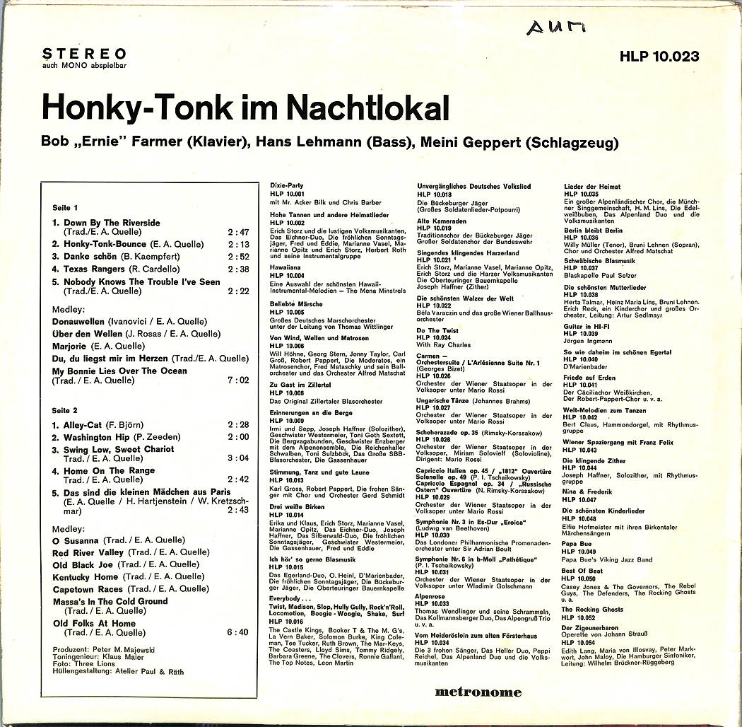 - Interpret Bob "Ernie" Farmer, Hans Lehmann, Meini Geppert
