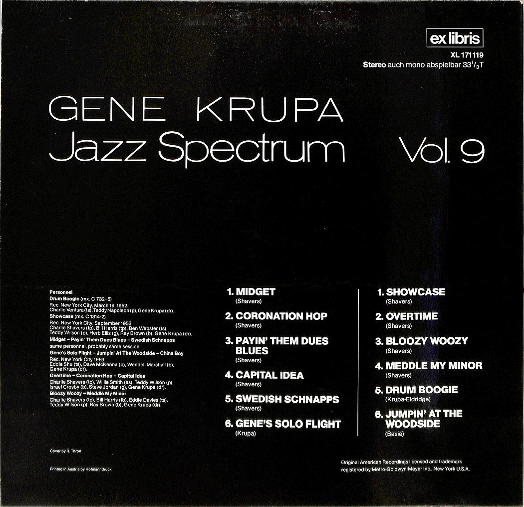 Written-By – Shavers* (tracks: A1 to A5, B1 to B4), Basie* (tracks: B6), Krupa* (tracks: A6, B5), Eldridge* (tracks: B5)