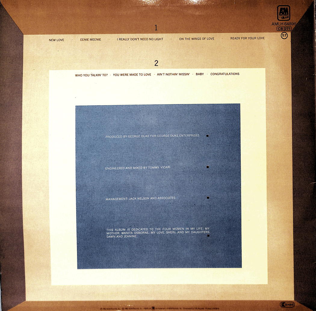 Arranged By [Horns] – George Duke (tracks: A5, B3, B5), Jeffrey Osborne (tracks: A5, B3), Jerry Hey (tracks: A1, A5, B1, B3)