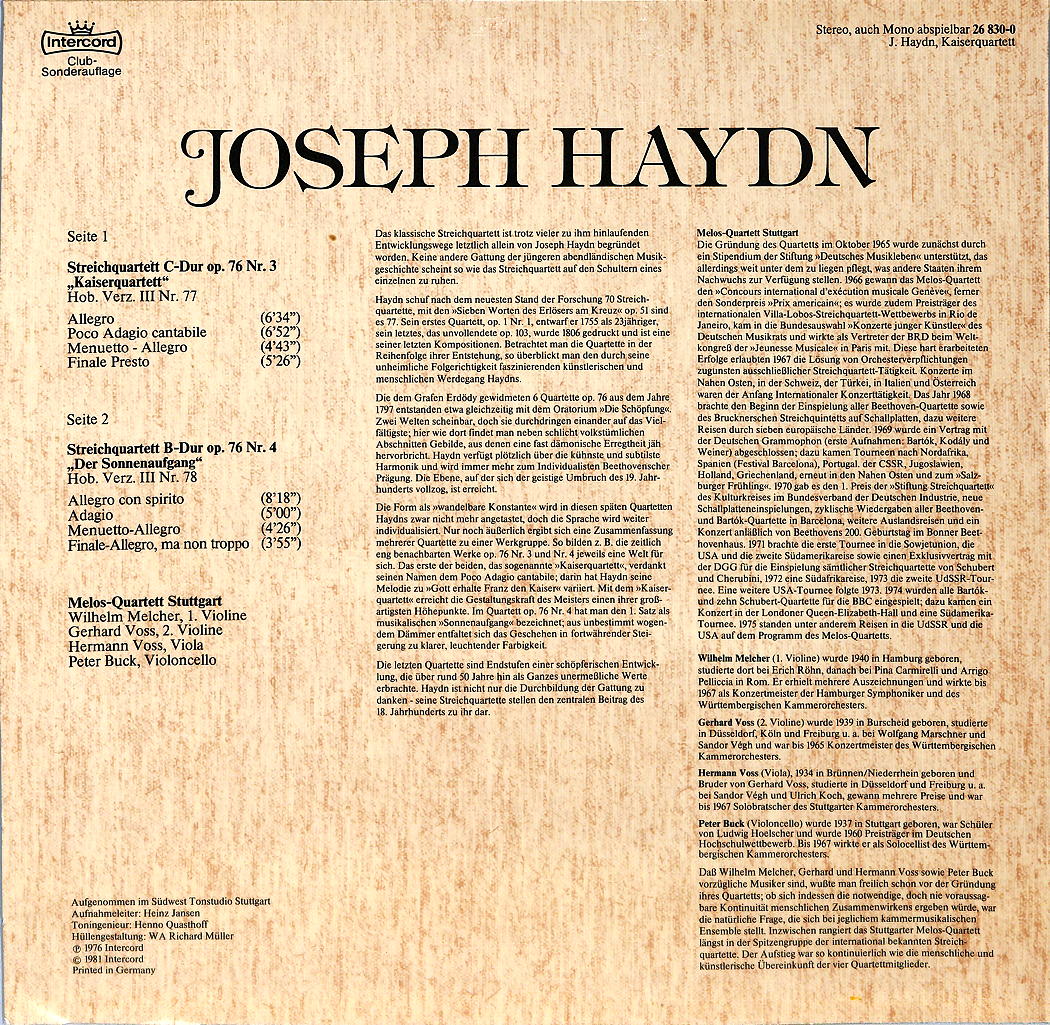 1 –Joseph Haydn, Wilhelm Melcher Streichquartett C-Dur op.76 Nr.3