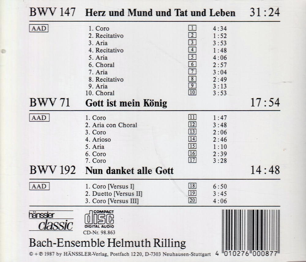Kantaten Vol. 12 - BWV 71, 147, 192 [CD]
