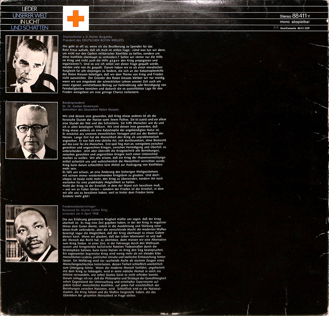 Liner Notes – Reverend Dr. Martin Luther King*, Dr. Dr. Gustav Heinemann*, Walter Bargatzky