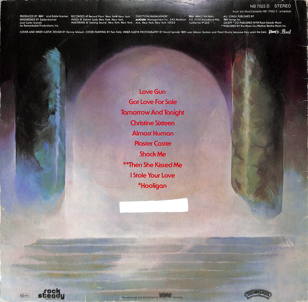 Written-By – Ace Frehley (tracks: A4), Simmons* (tracks: A2, A3, B3), Stanley* (tracks: A1, A5, B1), Peter Criss (tracks: B2), Jeff Barry/Ellie Greenwich/Phillip Spector*, Stan Penridge (tracks: B2)
