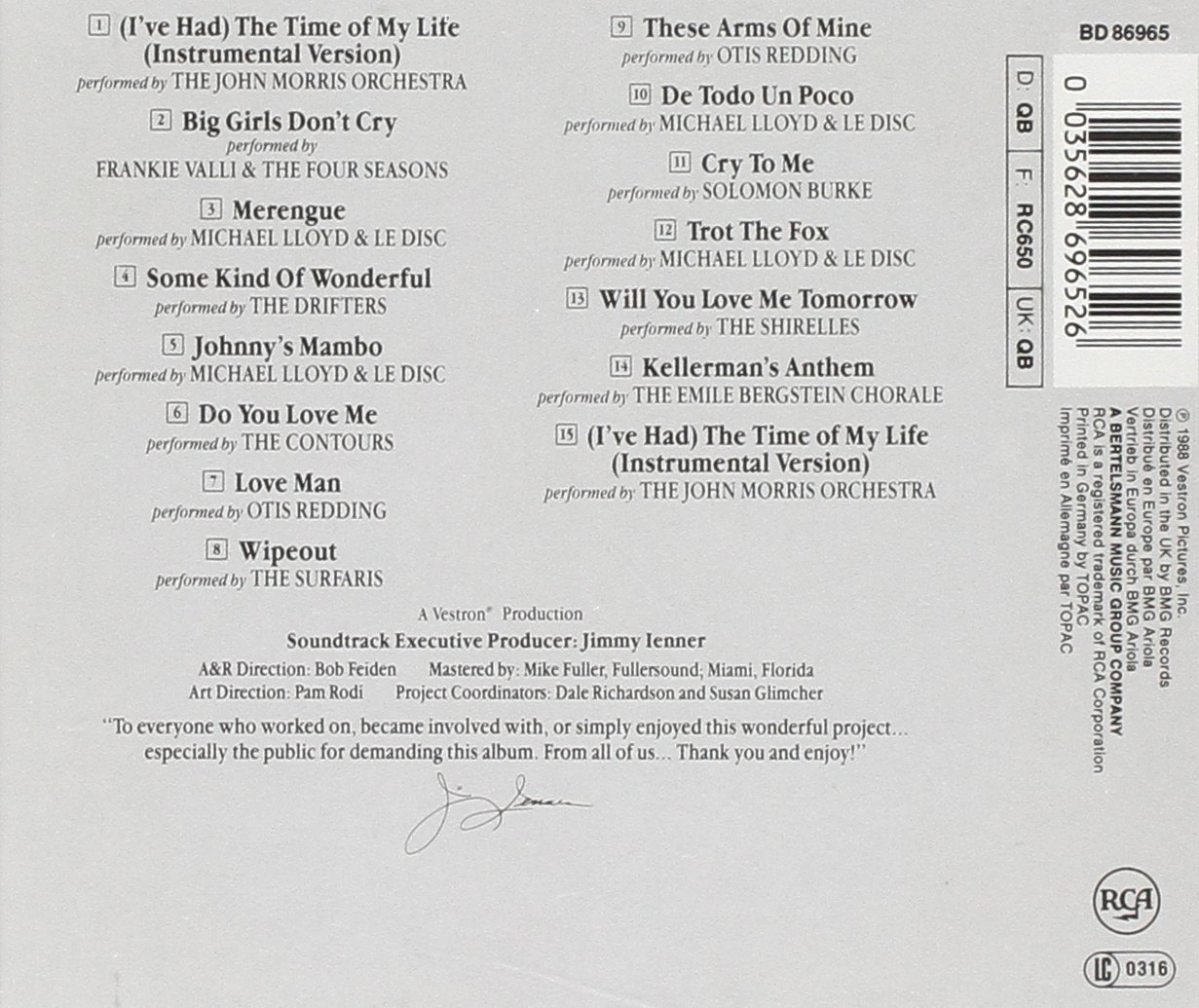 1 –The John Morris Orchestra (I've Had) The Time Of My Life (Instrumental Version) 0:37