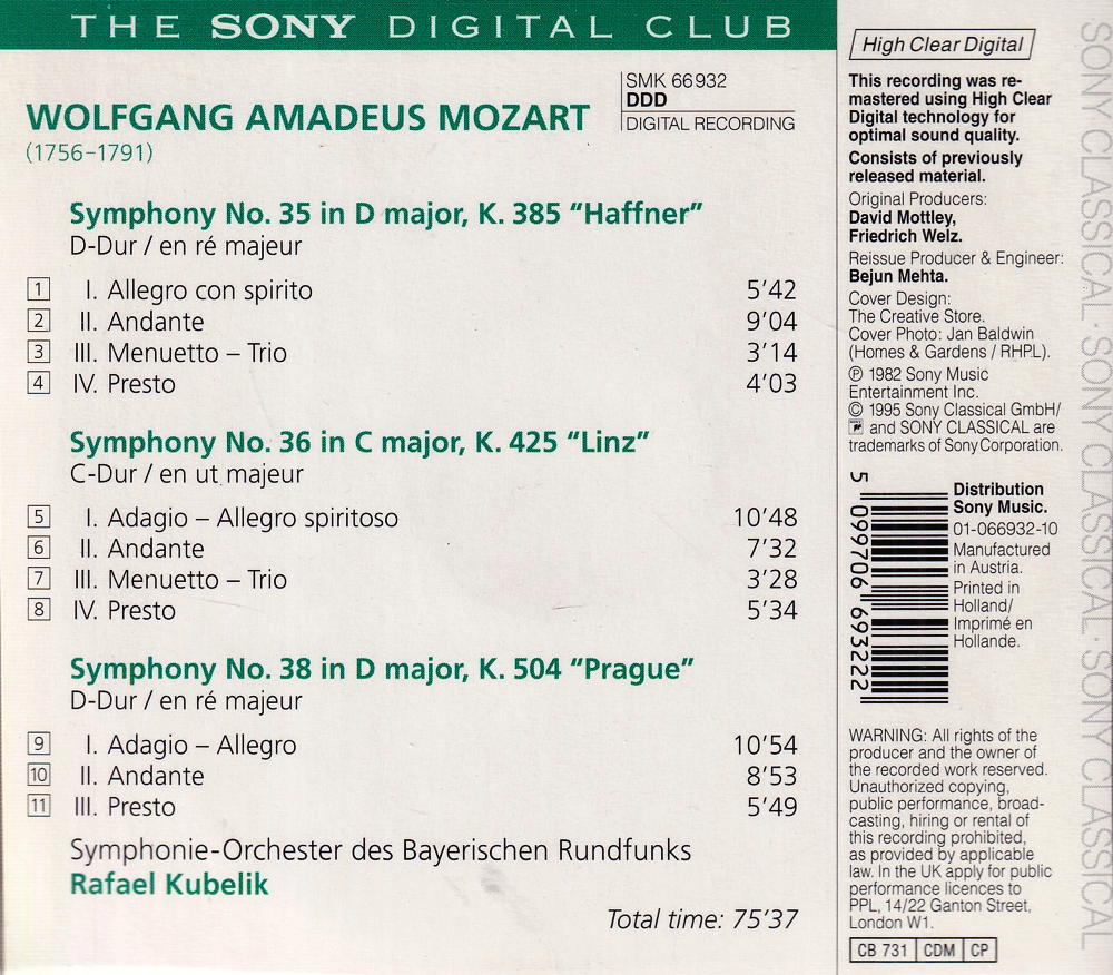 Mozart Symphony No. 35. 36. & 38. [CD]