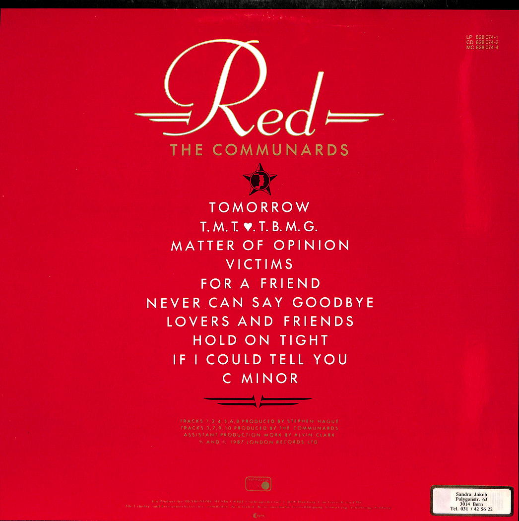 Producer – Stephen Hague (tracks: A1, A2, A4, A5, B1, B3), The Communards (tracks: A3, B2, B4, B5)