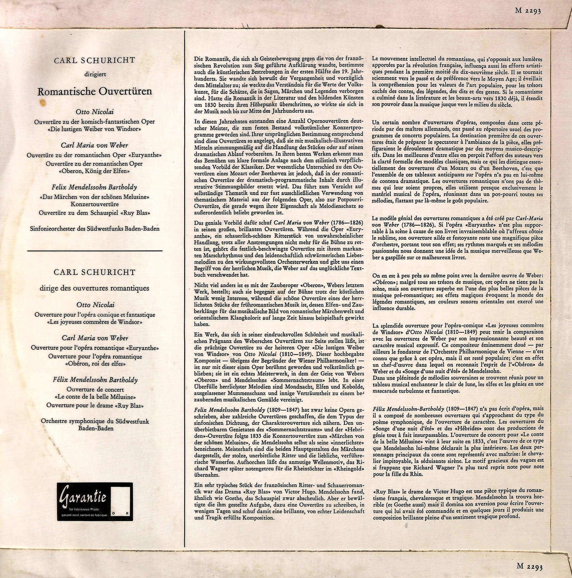- Interpret CARL SCHURICHT, Sinfonieorchester des Südwestfunks Baden-Bade