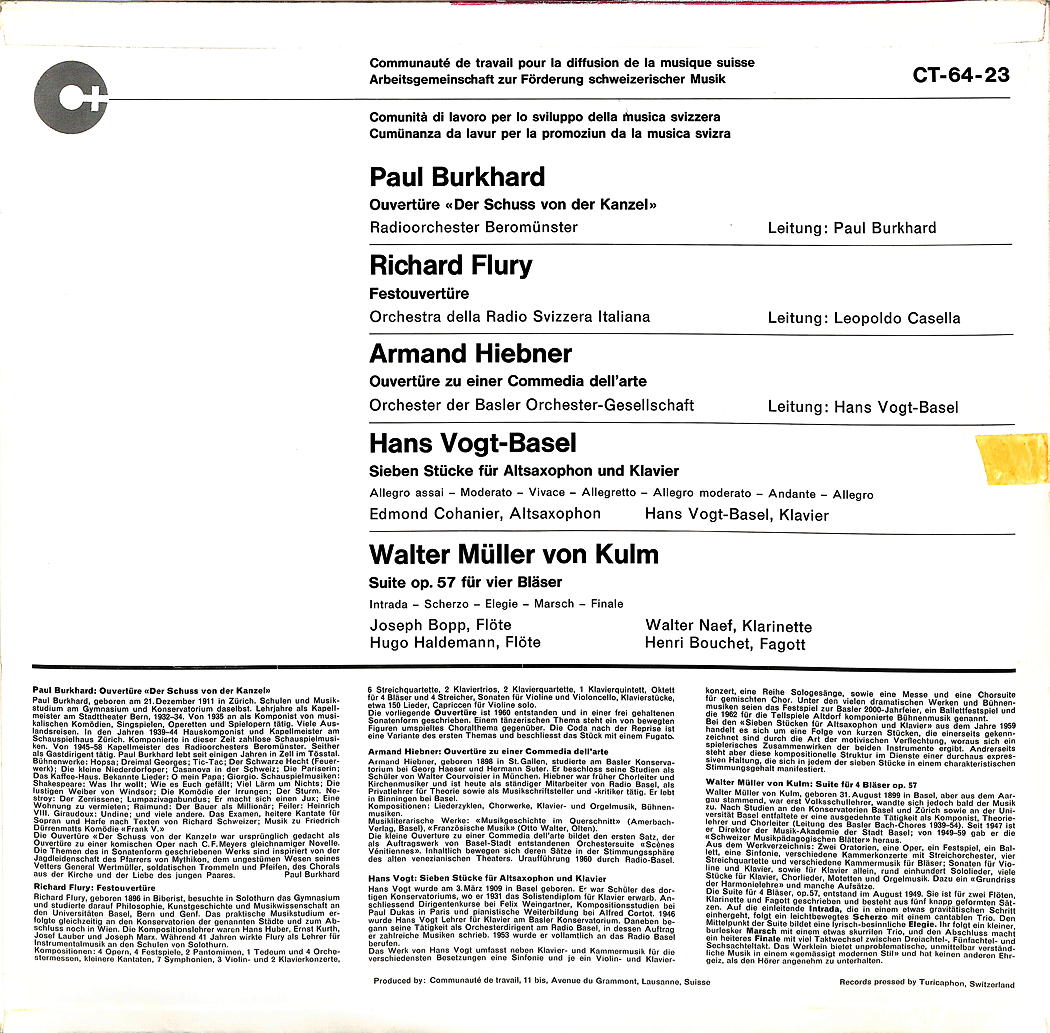- Interpret Paul Burkhard, Richard Flury, Armand Hiebner, Hans Vogt-Basel, Walter Müller von Kulm