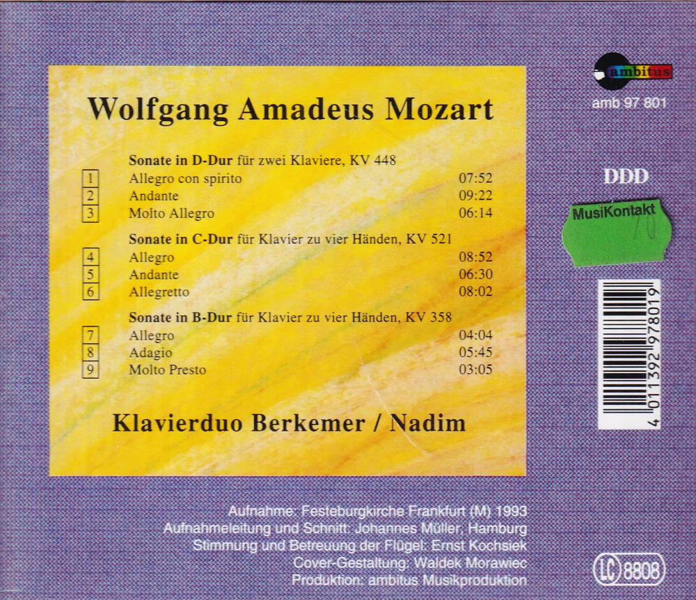 SOnate in D-Dur für zwei Klaviere - KV 448 / KV 521 / KV 358 [CD]