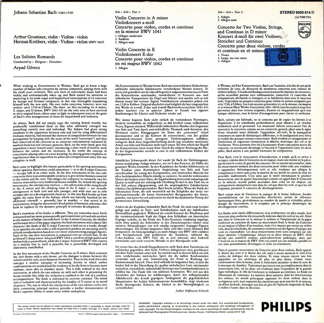 - Interpret Johann Sebastian Bach, Arthur Grumiaux, Herman Krebbers