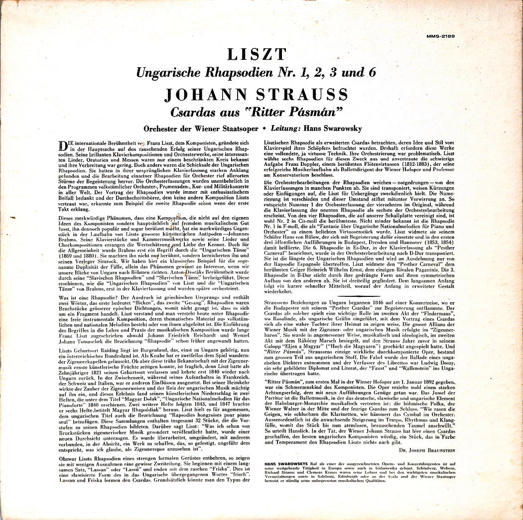 Composed By – Franz Liszt (tracks: A1 to B2), Johann Strauss* (tracks: B3)