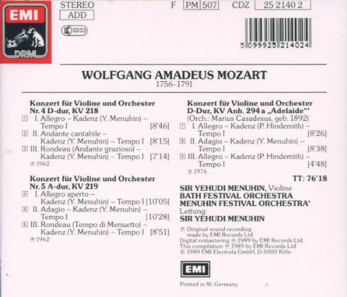 Violinkonzert 4 und 5 / Adelaide-Konzert [CD]