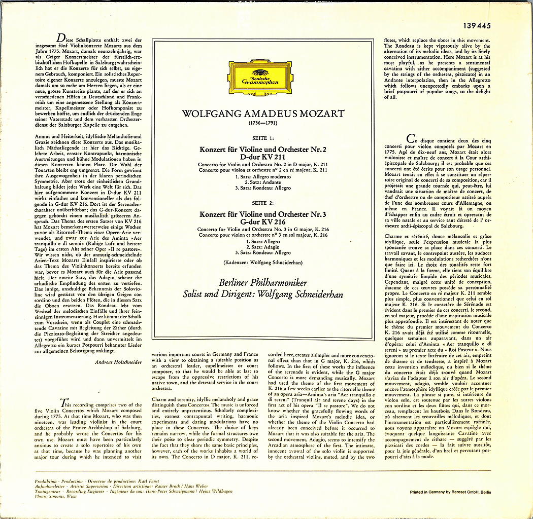Soloist, Conductor [Dirigent] – Wolfgang Schneiderhan