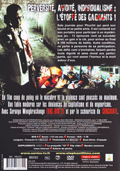 Sale journée pour Phuchit, qui perd son boulot et sa petite amie. Il est contacté sur son portable pour participer à un mystérieux jeu: 13 épreuves vont se succéder avec un gain à la clé, pour arriver au final à 100 millions de baths. Autre condition, ne parler à personne de sa participation. Les défis vont s'enchaîner, faisant perdre toute dignité et sens moral aux participants, qui vont semer l'horreur et la mort autour d'eux.