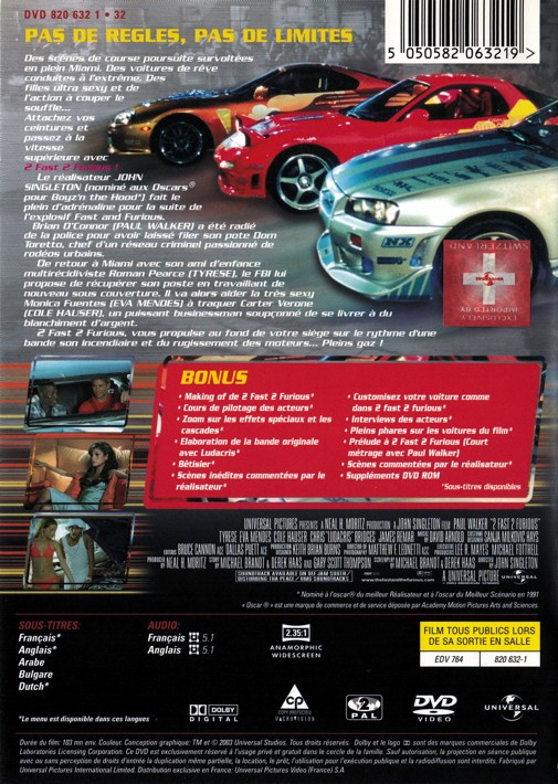 - Titre originale 2 Fast 2 Furious