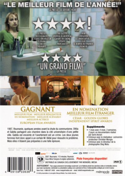 - Titre originale 4 luni, 3 saptamini, 2 zile