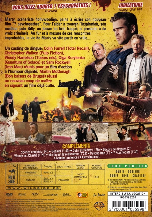Marty, scénariste hollywoodien en panne d'inspiration, peine à écrire son nouveau film intitulé : "7 psychopathes". Son meilleur ami Billy, un type bien mais un brin frappé, décide de l'aider en lui présentant de vrais criminels : un gangster, un tueur masqué, un serial-killer à la retraite et d'autres psychopathes. Au fur et à mesure de ces rencontres, la vie de Marty va très vite partir en vrille...
