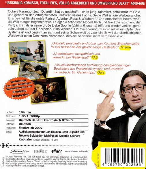 Octave est le maître du monde : il exerce la profession de rédacteur publicitaire. Il décide aujourd'hui ce que vous allez vouloir demain. Pour lui, "l'homme est un produit comme les autres". Octave travaille pour la plus grosse agence de pub du monde : Ross & Witchcraft, surnommée "La Ross". Il est couvert d'argent, de filles et de cocaïne. Pourtant, il doute. Deux événements vont bouleverser le cours de la vie d'Octave. Son histoire d'amour avec Sophie, la plus belle employée de l'agence, et une réunion chez Madone pour vendre un film de pub à ce géant du produit laitier. Le doué Octave déjante alors et décide de se rebeller contre le système qui l'a créé, en sabotant sa plus grande campagne. De Paris, où négocient les patrons d'agences, à Miami, où l'on tourne un spot sous antidépresseurs, de Saint-Germain-des-Prés à une île perdue d'Amérique Centrale, Octave parviendra-t-il à échapper à sa prison dorée?