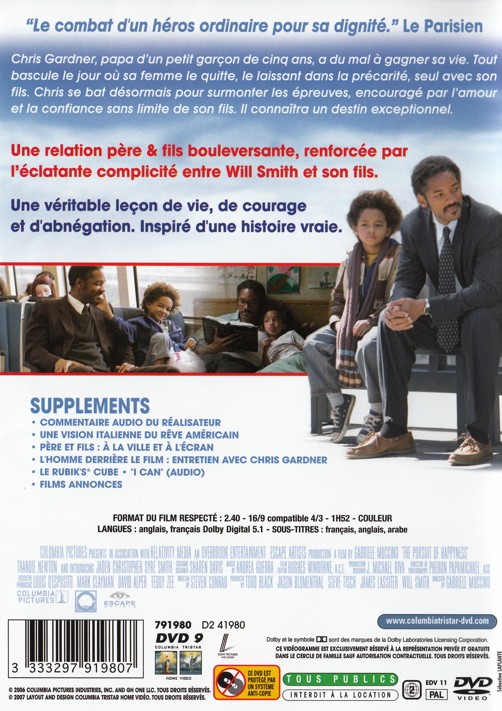 Chris Gardner, papa d'un petit garçon de cinq ans, a du mal à gagner sa vie et à subvenir aux besoins de sa famille. Tout bascule le jour où sa femme le quitte, le laissant dans la précarité, seul avec son fils. Chris se bat désormais pour surmonter les épreuves, encouragé par l'amour et la confiance sans limite de son fils. Il connaîtra un destin exceptionnel...