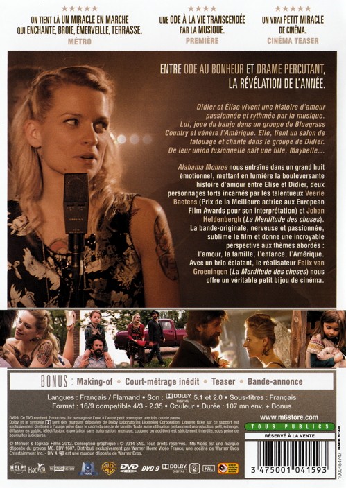 Didier et Élise vivent une histoire d'amour passionnée et rythmée par la musique. Lui, joue du banjo dans un groupe de Bluegrass Country et vénère l'Amérique. Elle, tient un salon de tatouage et chante dans le groupe de Didier. De leur union fusionnelle naît une fille, Maybelle...