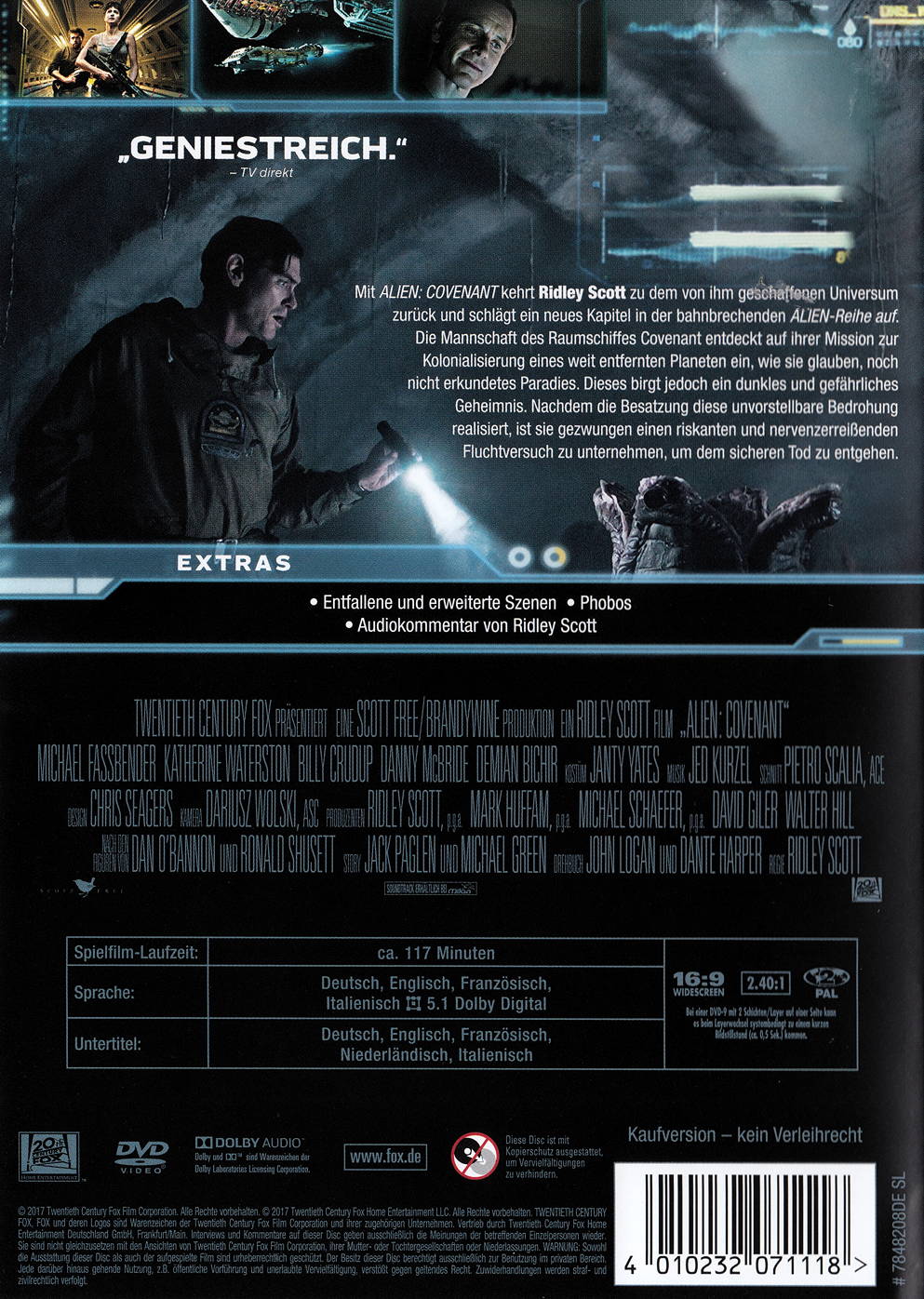 2103 ? 10 ans après Prometheus. Le vaisseau spatial Covenant est en route pour la lointaine planète Origae-6 afin d'y établir une colonie, un nouvel avant-poste pour l'humanité. Mais un incident grave contraint le vaisseau à se dérouter vers une autre planète émettant un étrange signal, située à une distance plus proche et qui a tout d'un paradis terrestre.