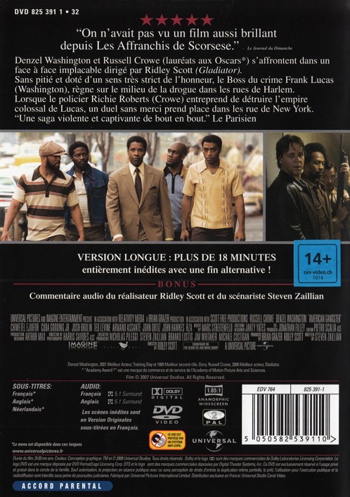 Sans pitié et doté d'un sens très strict de l'honneur, le Boss du crime Frank Lucas, règne sur le milieu de la drogue dans les rues de Harlem. Lorsque le policier Richie Roberts entreprend de détruire l'empire colossal de Lucas, un duel sans merci prend place dans les rues de New York...