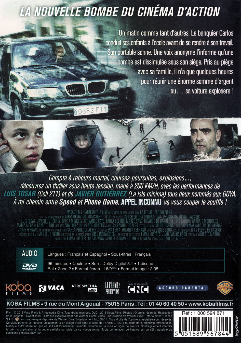 Comme chaque matin, Carlos, gérant d'une banque, emmène ses enfants à l'école avant de se rendre au travail. Sur la route, un coup de fil l'informe qu'il a la journée pour réunir une grande somme d'argent ou... sa voiture explosera !