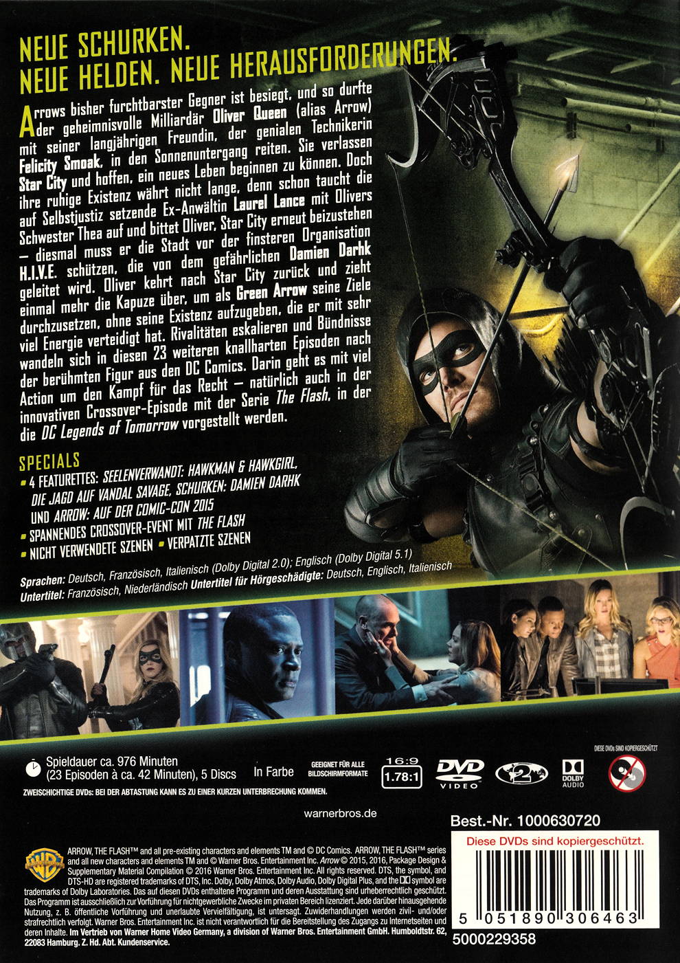 Arrows bisher furchtbarster Gegner ist besiegt, und so durfte der geheimnisvolle Milliardär Oliver Queen (alias Arrow) mit seiner langjährigen Freundin, der genialen Technikerin Felicity Smoak, in den Sonnenuntergang reiten. Sie verlassen Star City und hoffen ein neues Leben beginnen zu können. Doch ihre ruhige Existenz währt nicht lange, denn schon taucht die auf Selbstjustiz setzende Ex-Anwältin Laurel Lance mit Olivers Schwester Thea auf und bittet Oliver, Star City erneut beizustehen - diesmal muss er die Stadt vor der finsteren Organisation H.