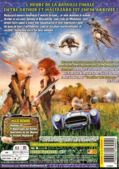 Maltazard mesure désormais 2 mètres 10 de haut? et veut dominer le monde.Seuls Arthur et ses amis Sélénia et Bétamèche, tous les trois en minimoys, peuvent l?arrêter. Ils vont devoir faire appel à toute leur imagination et leur ingéniosité pour, du haut de leurs 2 millimètres, contrer les plans machiavéliques de Maltazard et rétablir l?harmonie entre les deux mondes?