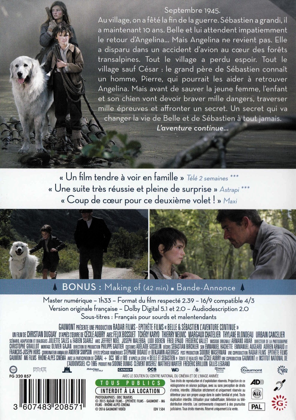- Titre originale Belle et Sébastien 2 - L'aventure continue