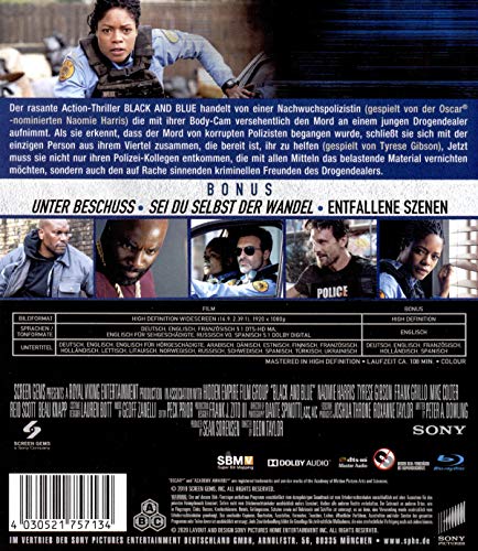 Der rasante Action-Thriller BLACK AND BLUE handelt von einer Nachwuchspolizistin (gespielt von der Oscar-nominierten Naomie Harris), die mit ihrer Body-Cam versehentlich den Mord an einem jungen Drogendealer aufnimmt. Als sie erkennt, dass der Mord von korrupten Polizisten begangen wurde, schliesst sie sich mit der einzigen Person aus ihrem Viertel zusammen, die bereit ist, ihr zu helfen (gespielt von Tyrese Gibson). Jetzt muss sie nicht nur ihren Polizei-Kollegen entkommen, die mit allen Mitteln das belastende Material vernichten möchten, sondern auch den auf Rache sinnenden kriminellen Freunden des Drogendealers