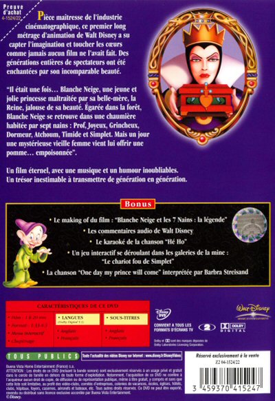 Blanche-Neige est une princesse dont la très grande beauté rend jalouse la Reine sa belle-mère, qui ordonne son assassinat. Épargnée mais abandonnée dans la forêt, elle trouve refuge chez sept nains.