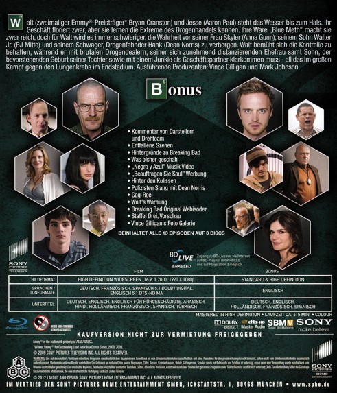 Walt (zweimaliger Emmy-Preisträger Bryan Cranston) und Jesse (Aaron Paul) steht das Wasser bis zum Hals. Ihr Geschäft floriert zwar, aber sie lernen die Extreme des Drogenhandels kennen. Ihre Ware "Blue Meth" macht sie zwar reich, doch für Walt wird es immer schwieriger, die Wahrheit vor seiner Frau Skyler (Anna Gunn), seinem Sohn Walter Jr. (RJ Mitte) und seinem Schwager, Drogenfahnder Hank (Dean Norris) zu verbergen. Walt bemüht sich die Kontrolle zu behalten, während er mit brutalen Drogendealern, seiner sich zunehmend distanzierenden Ehefrau samt Sohn, der bevorstehenden Geburt seiner Tochter sowie mit einem Junkie als Geschäftspartner klarkommen muss - all das im grossen Kampf gegen den Lungenkrebs im Endstadium. Ausführende Produzenten: Vince Gilligan und Mark Johnson.