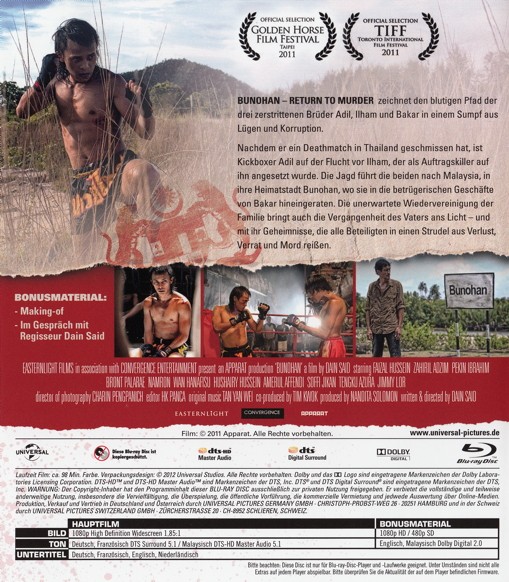 Un kickboxer, un assassin et un businessman. Trois frères qui devront affronter la trahison, la corruption et la violence dans les paysages hostiles de la Malaisie. Le plus jeune, Adil, champion impitoyable, est en fuite après un combat à mort illégal, alors que son aîné Ilham, tueur à gages, pourchasse sa prochaine cible. C'est le troisième frère, Bakar, homme d'affaires sans scrupule, qui va les réunir à Bunohan, pour un affrontement où la haine, le meurtre et la violence seront aussi au rendez-vous...