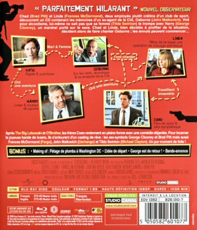 Osborne Cox, analyste à la CIA, est convoqué à une réunion ultrasecrète au quartier général de l'Agence à Arlington, en Virginie. Malheureusement pour lui, il découvre rapidement l'objectif de cette réunion : il est renvoyé. Cox ne prend pas très bien la nouvelle. Il rentre chez lui à Georgetown pour écrire ses mémoires et noyer ses ennuis dans l'alcool - pas nécessairement dans cet ordre. Sa femme, Katie, est consternée, mais pas vraiment surprise. Elle a une liaison avec Harry Pfarrer, un marshal fédéral marié pour qui elle décide alors de quitter Cox. Quelque part dans une banlieue de Washington, à des années-lumière de là, Linda Litzke, employée au club de remise en forme Hardbodies Fitness, a du mal à se concentrer sur son travail. La seule chose qui l'intéresse, c'est l'opération de chirurgie esthétique d'ampleur qu'elle désire subir. Elle compte sur son collègue, Chad Feldheimer, pour faire son boulot à sa place. Linda est à peine consciente que le directeur de la salle de sport, Ted Treffon, est fou d'elle, même si elle rencontre d'autres hommes via Internet. Lorsqu'un CD contenant des informations destinées au livre de Cox tombe accidentellement entre les mains de Linda et Chad, tous deux décident de tirer parti de cette aubaine. Alors que Ted se fait du souci, persuadé que "rien de bon ne sortira de tout ça", les événements se précipitent et échappent bientôt à tout contrôle, occasionnant une série de rencontres aussi dangereuses qu'hilarantes...