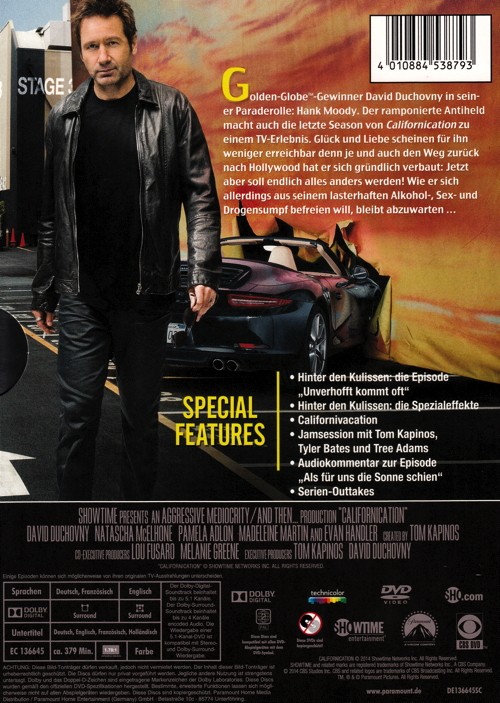 GOLDEN-GLOBE™-Gewinner David Duchovny in seiner Paraderolle: Hank Moody. Der ramponierte Antiheld macht auch die letzte Season Californication zu einem TV-Erlebnis. Glück und Liebe scheinen für ihn weniger erreichbar denn je und auch den Weg zurück nach Hollywood hat er sich gründlich verbaut: Jetzt aber soll endlich alles anders werden! Wie er sich allerdings aus seinem lasterhaften Alkohol-, Sex- und Drogen-Sumpf befreien will, bleibt abzuwarten ...